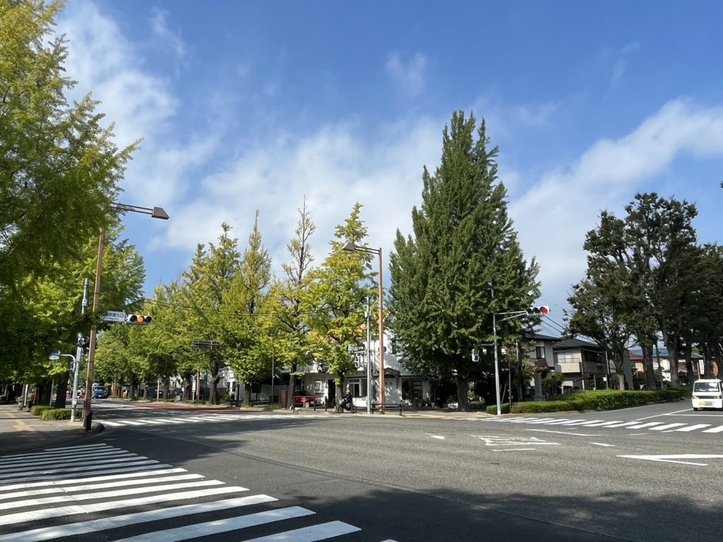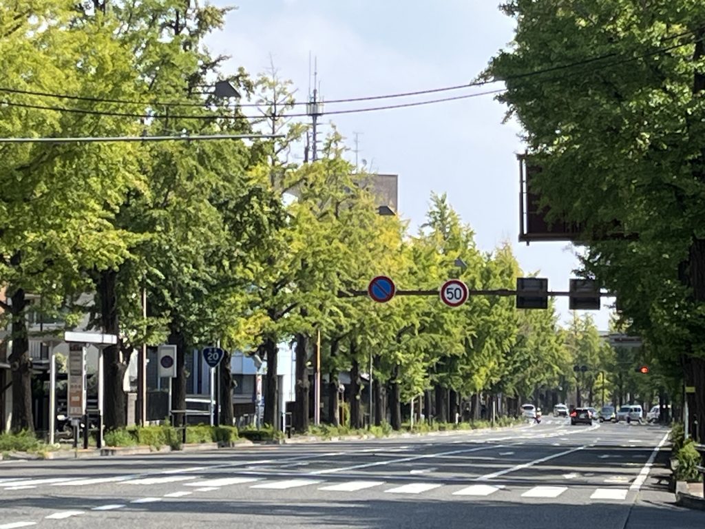 下の写真は、本日の多摩御陵入口交差点付近のいちょう並木です。