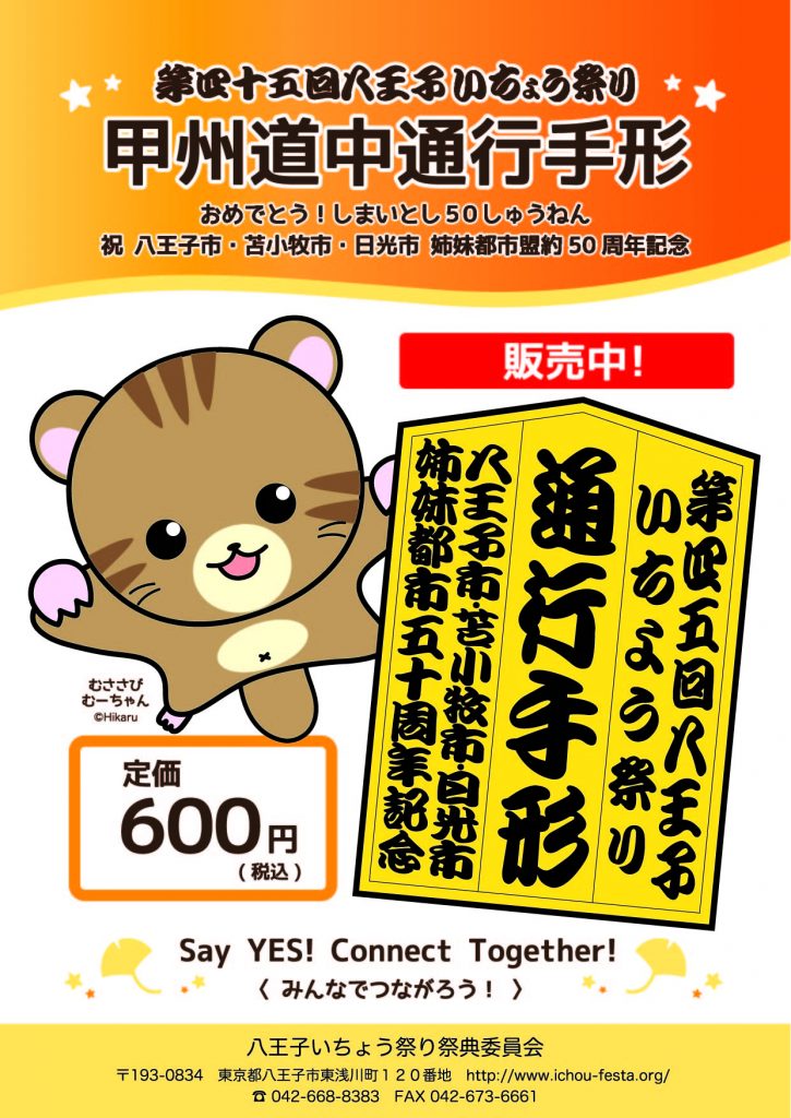 本年度のテーマ「八王子市・苫小牧市・日光市 姉妹都市盟約50周年記念」の手形を発行します。