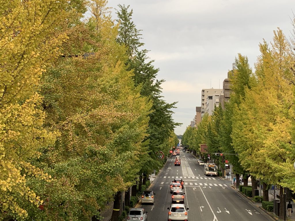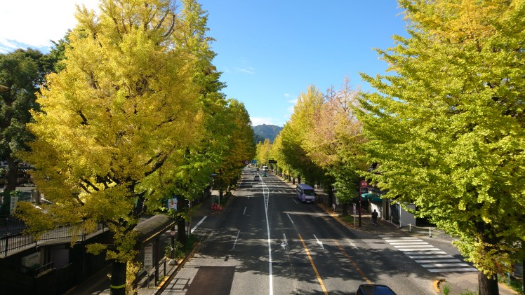 いちょう並木黄葉情報を始めました。変わりゆくいちょう並木を定期ですがお伝えします。約4.5km、標高差約40mのいちょう並木!場所によりその黄葉の進む速さが違っています。